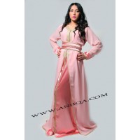 Caftan sans manches en satin de soie et Dfina en mousseline de soie